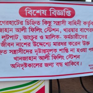 বাগেরহাট শহরের খানজাহান আলী ফিলিং স্টেশনে হামলা-ভাঙচুর ও পাঁচ লক্ষাধিক টাকা লুটপাটের ঘটনায় এক যুবদল নেতাকে গ্রেফতার করেছে পুলিশ। রবিবার রাত ৯টার দিকে শহরের শহীদ মিনার সংলগ্ন এলাকা থেকে সুমন পাইক (৪০) নামের ওই নেতাকে গ্রেফতার করা হয়। গ্রেফতার সুমন পাইক বাগেরহাট পৌর যুবদলের আহ্বায়ক ও শহরের খারদ্বার এলাকার বাসিন্দা। সোমবার আদালতের মাধ্যমে তাকে কারাগারে পাঠানো হয়।