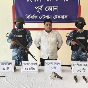 কক্সবাজারের টেকনাফে অভিযান চালিয়ে বিদেশি পিস্তল, গুলি ও দেশীয় অস্ত্রসহ এক শীর্ষ মাদক কারবারিকে গ্রেফতার করেছে কোস্টগার্ড। গ্রেফতারকৃত ব্যক্তির নাম মো. রাসেল (৩৬)। তিনি ‘ডন রাসেল’ নামে বেশি পরিচিত এবং টেকনাফ থানার সাবরাং ইউনিয়নের সিকদার পাড়ার বাসিন্দা। শনিবার বিকালে সংবাদ বিজ্ঞপ্তিতে কোস্টগার্ডের মিডিয়া কর্মকর্তা লেফটেন্যান্ট কমান্ডার সাব্বির আলম সুজন এ তথ্য জানান।