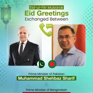 পাকিস্তানের প্রধানমন্ত্রী মুহাম্মদ শেহবাজ শরীফ বাংলাদেশের প্রধানমন্ত্রী তারেক রহমানের সঙ্গে টেলিফোনে কথা বলেছেন। শুক্রবার (২০ মার্চ) ফোনালাপে দুই নেতার মধ্যে উষ্ণ ও সৌহার্দ্যপূর্ণ আলাপচারিতায় প্রধানমন্ত্রী শেহবাজ শরীফ প্রধানমন্ত্রী তারেক রহমান এবং বাংলাদেশের ভ্রাতৃপ্রতিম জনগণকে ঈদুল ফিতরের শুভেচ্ছা জানান। পাকিস্তানের প্রধানমন্ত্রীর কার্যালয় এই তথ্য জানায়।
