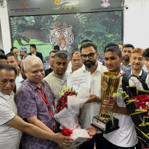 সাফ অনূর্ধ্ব-২০ টুর্নামেন্টে বাংলাদেশ অপরাজিত চ্যাম্পিয়ন হয়েছে। এ নিয়ে টানা দ্বিতীয়বারের মতো ট্রফি এসেছে দেশে। আজ (শনিবার) সন্ধ্যায় দেশের মাটিতে পা রেখেছে চ্যাম্পিয়ন দলের সদস্যরা। সন্ধ্যা ৭টার দিকে ঢাকার হযরত শাহজালাল আন্তর্জাতিক বিমানবন্দরে পৌঁছায় তারা।