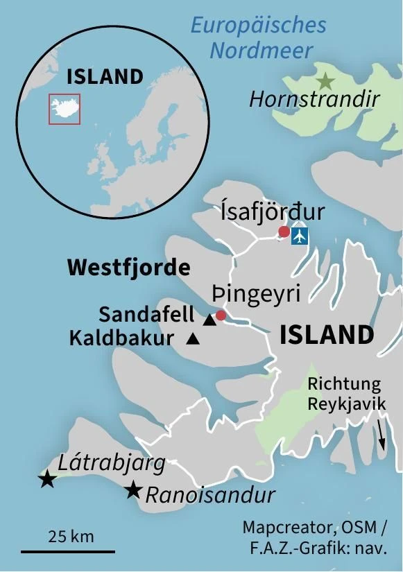 Die einst prosperierenden Dörfer verloren erst die Wirtschaftskraft, dann die Menschen. Die einsetzende Landflucht führte zum Niedergang ganzer Landstriche, während in Reykjavik die Glastürme aus dem Boden wuchsen. Die Westfjorde, nur durch einen schmalen Streifen mit dem Rest des Landes verbunden, traf es besonders hart. Landwirtschaft ist an den steilen Berghängen kaum möglich, Industrie nicht vorhanden. Gerade einmal zwei Prozent der Isländer leben hier. Es ist ein sehr ursprüngliches Stück Island mit seinem Dynjandi-Wasserfall, den Látrabjarg-Vogelklippen, dem rotsandigen Rauðisandur-Strand. Das zieht auch immer mehr Besucher an. Mittlerweile hat sogar ein Hotel im 280-Seelen-Dorf Þingeyri eröffnet.