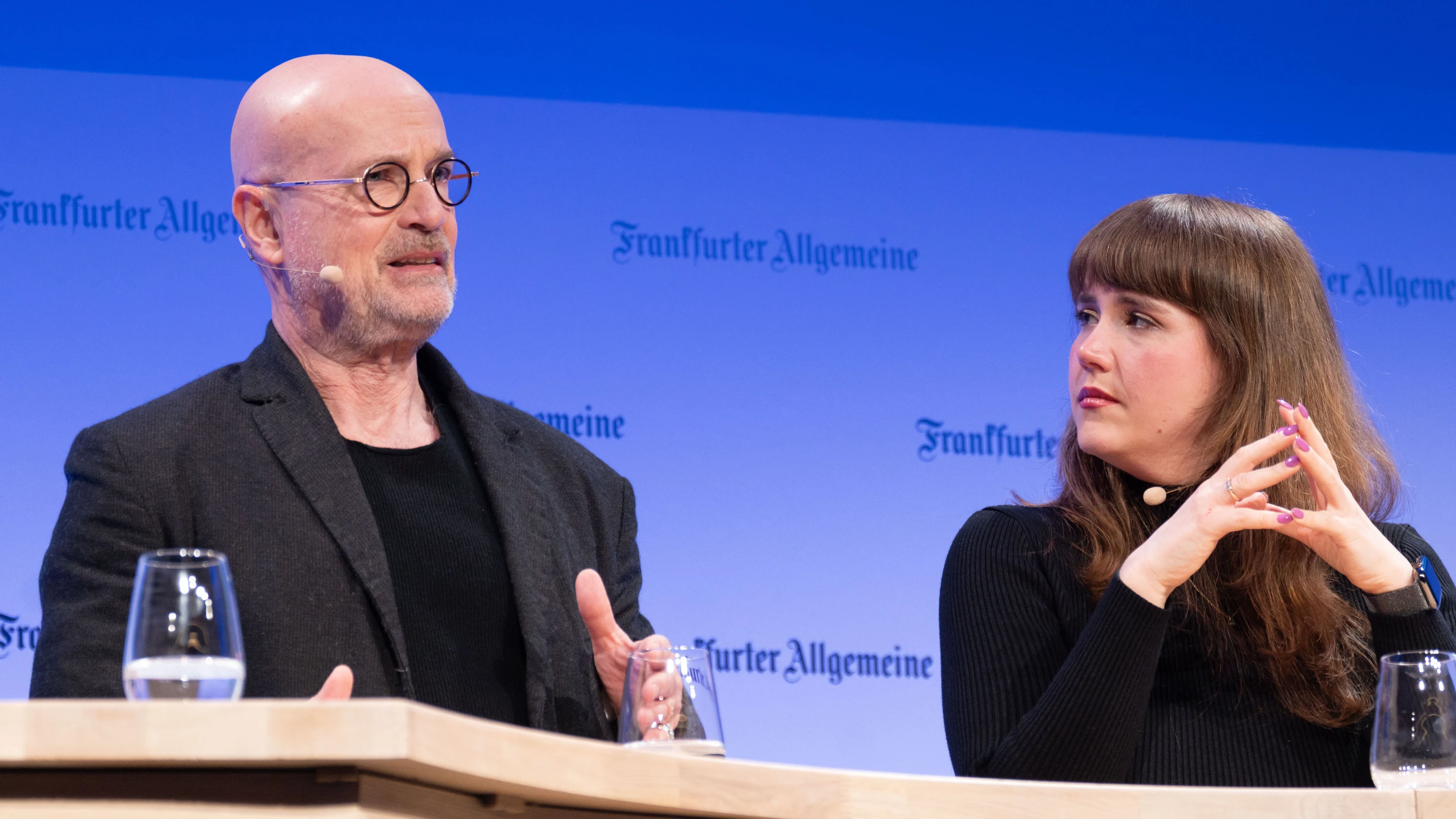 Grünen-Politikerin Ricarda Lang und Schauspieler Christian Berkel diskutieren auf dem F.A.Z.-Kongress über das Verhältnis von Politik und Gesellschaft.