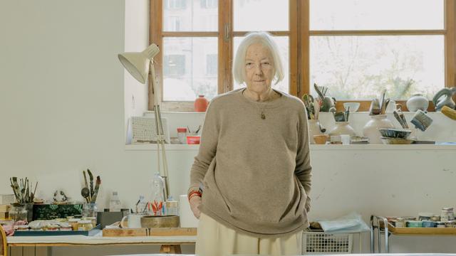 Es ist elf Uhr vormittags in Rom, im Hof des weitläufigen Palazzo Doria Pamphilj. Hier hat die Künstlerin und Autorin Isabella Ducrot seit Jahrzehnten ihr Atelier, ihre Wohnung ist im selben Gebäude. In einem anderen Flügel, in der berühmten Galleria Doria Pamphilj, hängen Gemälde von Caravaggio, Tintoretto und Velázquez. Ihre Studiomanagerin Nora Iosia führt uns aber direkt zum Atelier, der Fotograf baut sein Licht auf, die 95-jährige Künstlerin bietet einen Kaffee an und einen Platz neben ihr auf dem Sofa.